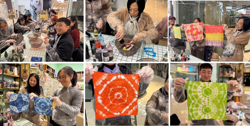 在中华艺术宫内,教职工们在专业讲解员的带领下参观清明上河图巨幕展。动态巨幕生动还原了古画细节,讲解员细致解读画作背后的历史故事与艺术价值,让大家沉浸式感受传世名作的恢弘气势。参观结束后,教职工们一同参与方巾扎染手作环节。大家在专业指导下构思图案、动手创作,指尖翻飞间,蓝、白、红各色花纹的方巾逐渐成型,大家充分体验传统工艺的独特乐趣。此次活动将艺术鉴赏与手工实践相结合,不仅拓宽了教职工文化视野,更增进了团队凝聚力,获得大家广泛好评。