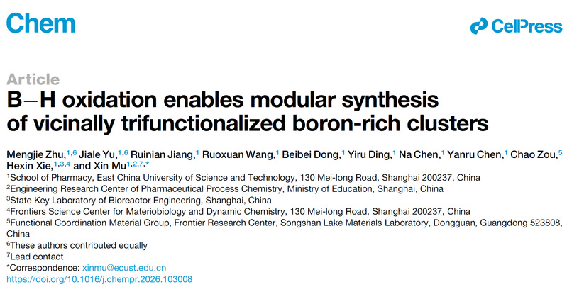 原文链接:B−H oxidation enables modular synthesis of vicinally trifunctionalized boron-rich clusters - ScienceDirect